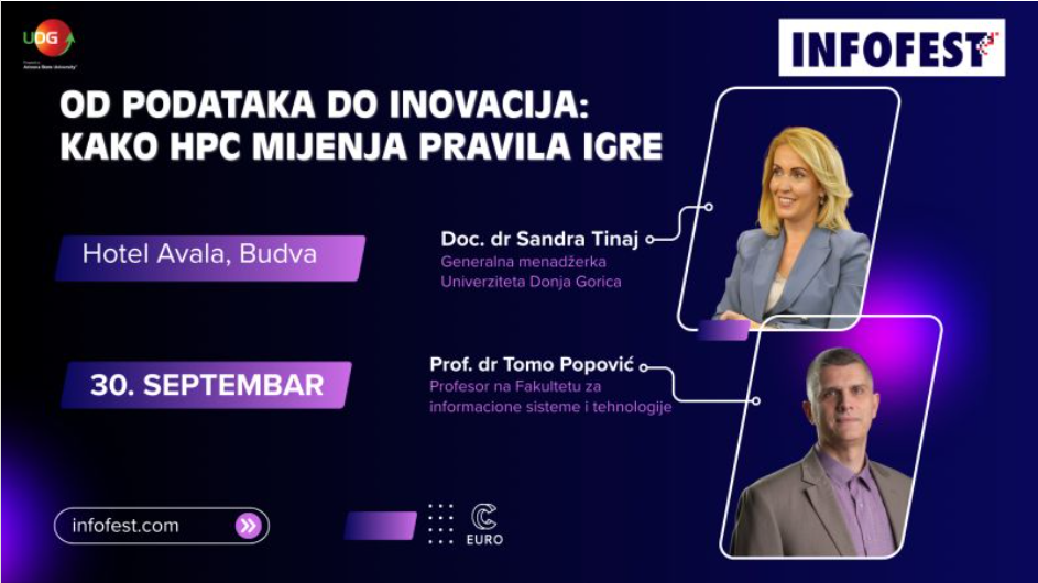 We are delighted to announce that our General Manager, Sandra Tinaj, and Professor Tomo Popović will take part in Infofest 2025 in Montenegro. They will present the EuroCC 2 and EuroCC4SEE project and discuss how supercomputing is opening new opportunities for science, innovation, and industry.