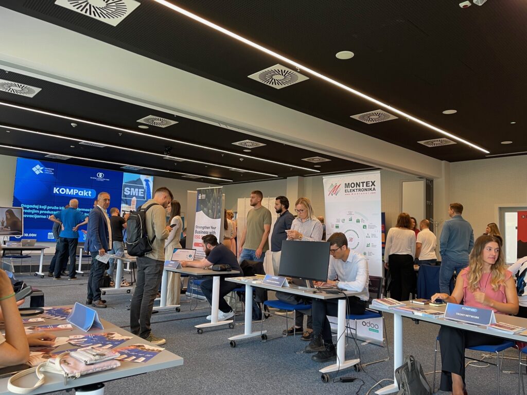 The Chamber of Economy of Montenegro (PKCG), in cooperation with the Science and Technology Park of Montenegro (NTP), organized the interactive event “KOMPakt”, bringing together entrepreneurs, SMEs, innovative companies, IT representatives, universities, and institutions. The event served as a platform to present institutional support measures, promote initiatives for digital and green transformation, and connect businesses with new technologies to enhance international competitiveness.