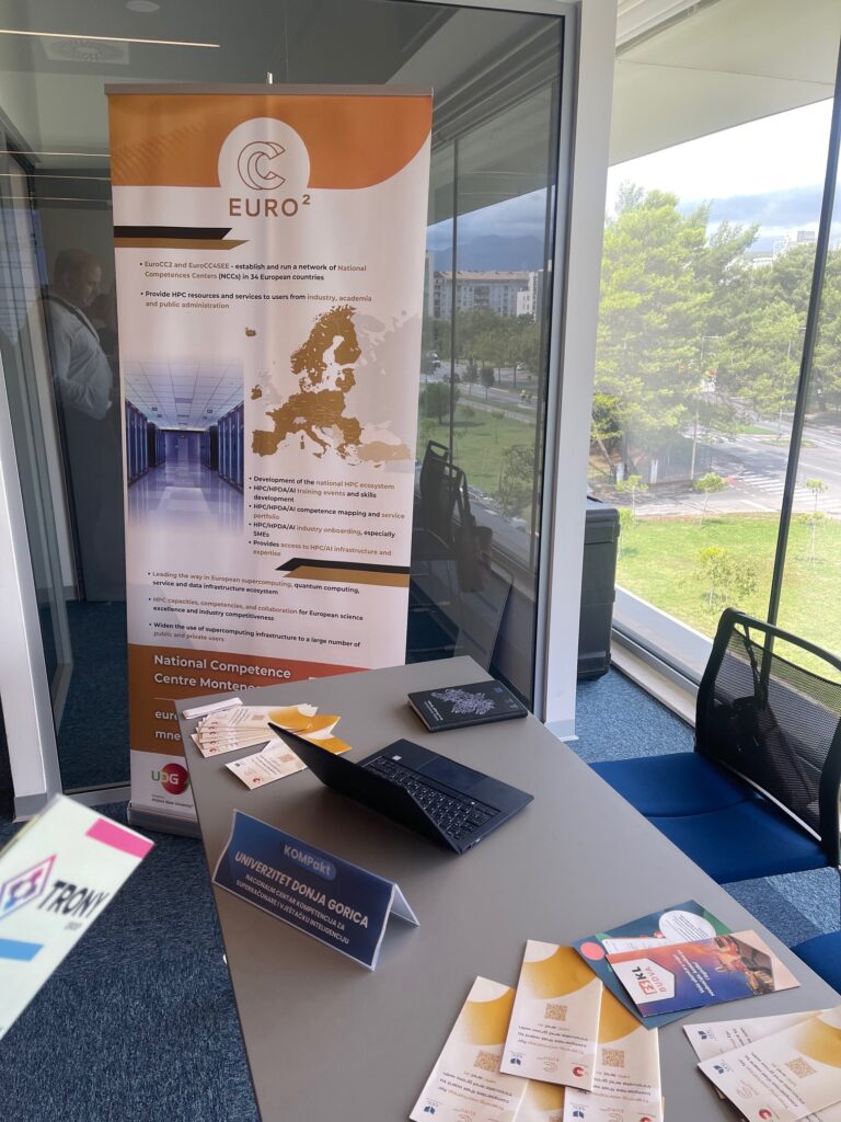 NCC Montenegro participated as one of the exhibitors, presenting its activities within the EuroCC2/EuroCC4SEE project. The NCC highlighted opportunities for Montenegrin entrepreneurs, innovators, and industry to adopt HPC and AI solutions—offering customized training, expert consultancy, and access to leading European supercomputers at no additional cost. Visitors engaged in discussion on their project ideas and business needs, ranging from advanced trading strategies for the capital markets, over smart tourism app enhancements, to precise long-term weather forecasting models, leveraging HPC capabilities and NCC support.
