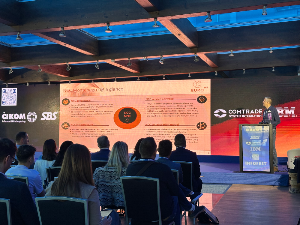 NCC Montenegro, in collaboration with the NCC Slovenia, organized a collaborative workshop and training AI Solutions from Innovative SMEs: Practical Examples and Lessons Learned on October 7, 2025 in Podgorica at University of Donja Gorica. The workshop focused on the opportunities and advantages of HPC and AI technologies in the business sector and best practices in the industry. Approximately 25 participants attended the workshop, including industry experts who deal daily with research and practical examples in the field of artificial intelligence based on HPC.